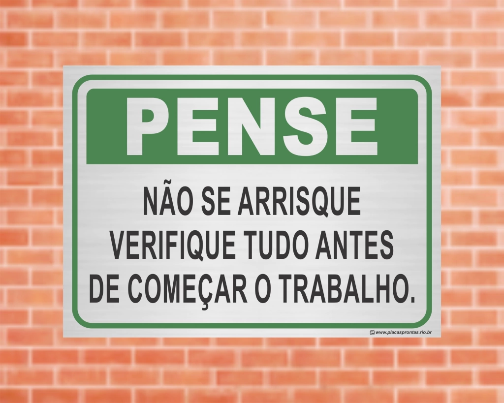 Placa de Sinalização Pense são indicadas para concientizar sobre de riscos diretos ou indiretos e são de acordo com as normas  NR26 e NR18. Super fáceis de aplicar, podem vim acompanhadas de fita VHB para serem coladas ou furos nas laterais para fixação de forma opcional. (não acompanha parafusos e buchas).