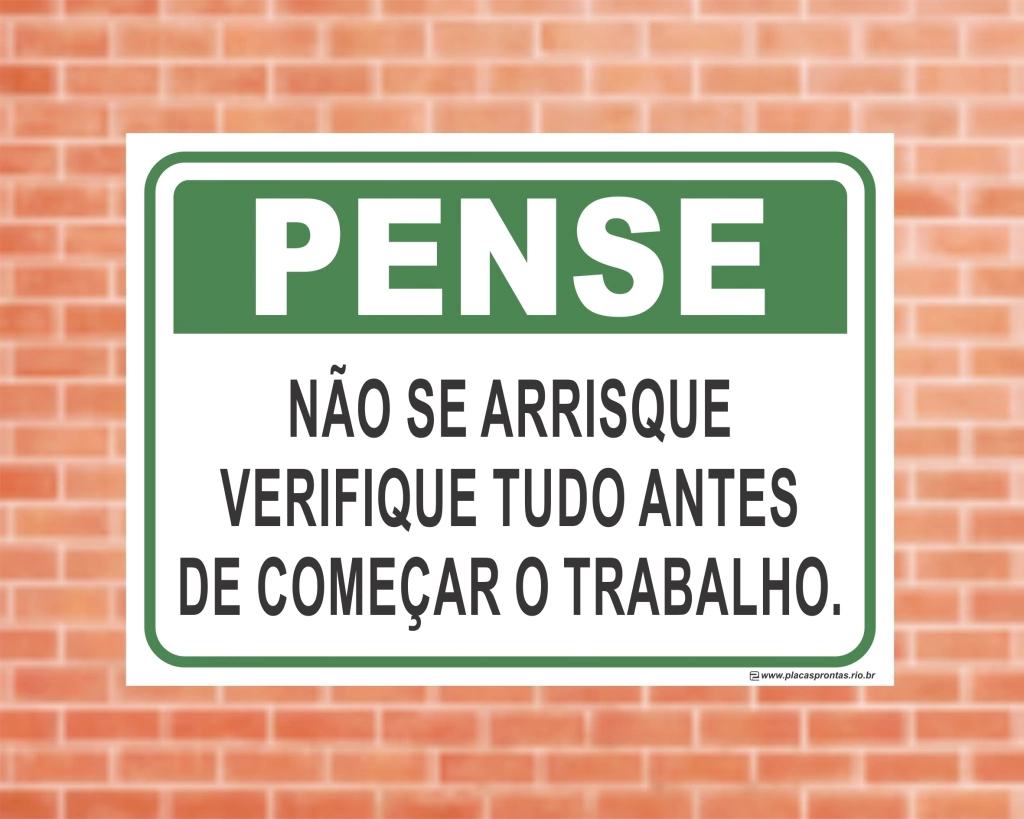 Placa de Sinalização Pense Não se arrisque verifique tudo antes de começar o trabalho