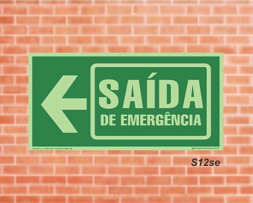 Placa de Sinalização para Rota de Fuga, Saída de Emergência a Esquerda. Conforme a ABNT NBR 13434-3 - S12.